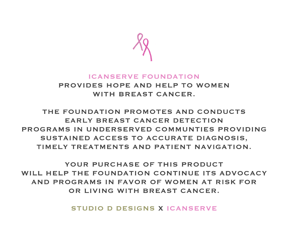 Each purchase supports ICanServe's advocacy in favor of those at risk or or living with breast cancer.